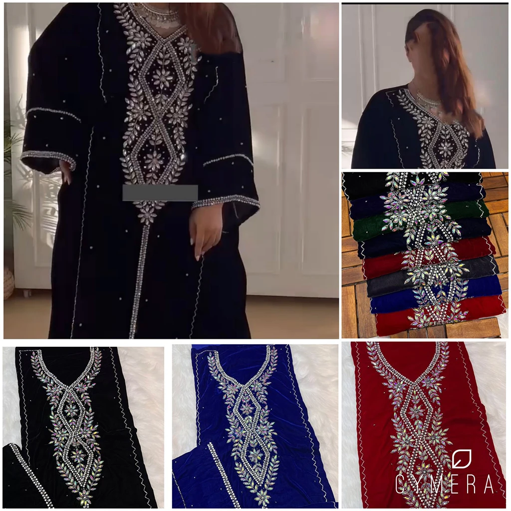 فستان مخمل فاخر مطرز بالخرز المغربي اليدوي بتصميم أنيق يلفت الأنظار. يتميز بخامة مخمل ناعمة ولمعة فاخرة مع تطريز خرز متقن يضفي لمسة راقية للمناسبات والاحتفالات. متوفر بعدة ألوان أنيقة (أسود، كحلي، خمري، أخضر، وألوان أخرى) ليتناسب مع ذوقك الخاص.